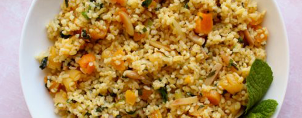 Bulgur Pilaf with Dates, Dried Apricots and Toasted Walnuts